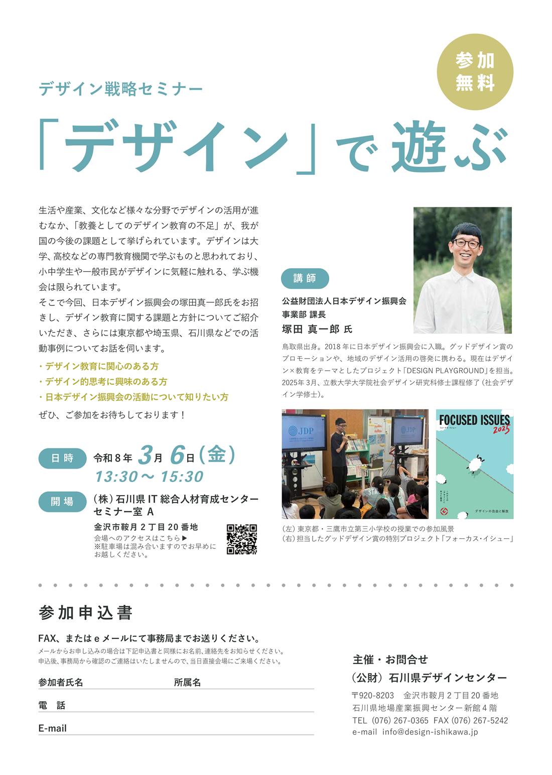 [A-07063]【石川県デザインセンター】デザイン戦略セミナー「『デザイン』で遊ぶ」参加者募集のご案内