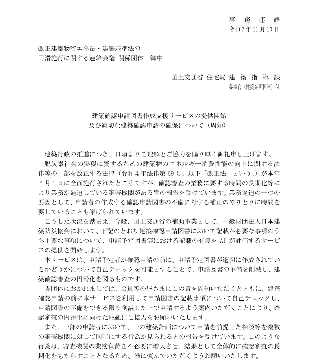 【国交省・建防協】建築確認申請図書作成支援サービスの提供開始について