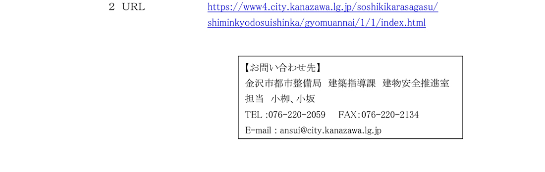 金沢市都市整備局 建築指導課よりのお知らせです。