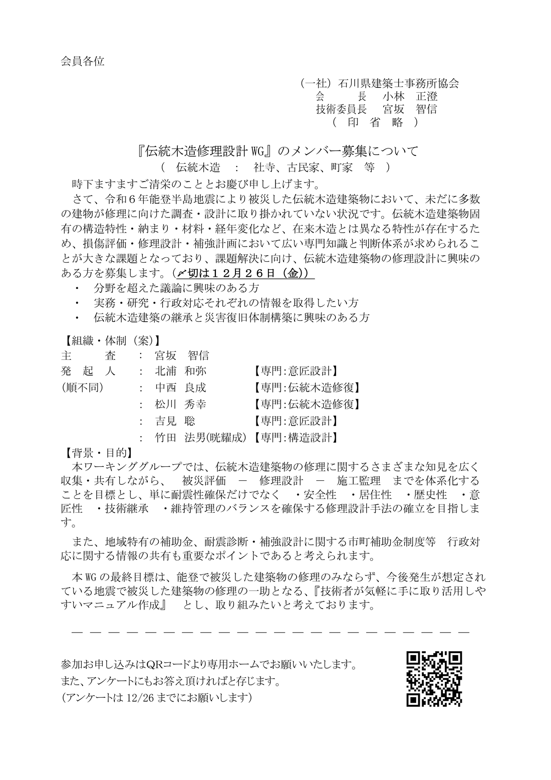 (〆切:12/26)『伝統木造修理設計WG』のメンバー募集について