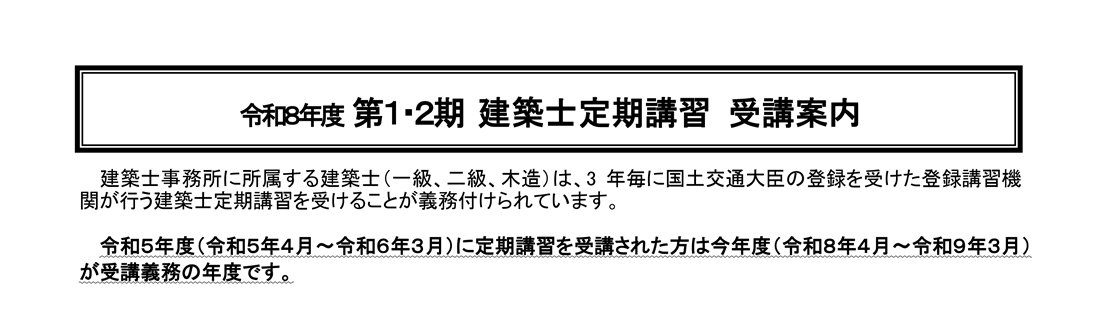 令和8年度 一級・二級・木造建築士定期講習 受講案内