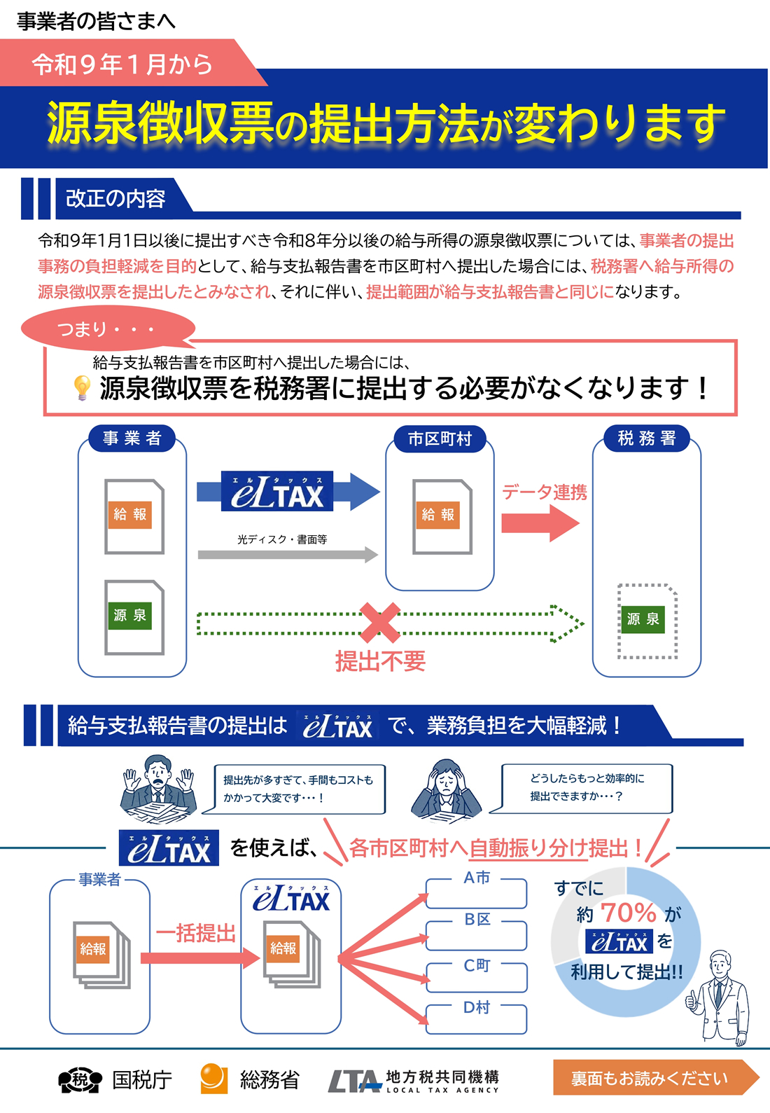 【総務省】令和9年1月以降の源泉徴収票の提出方法に関する改正について
